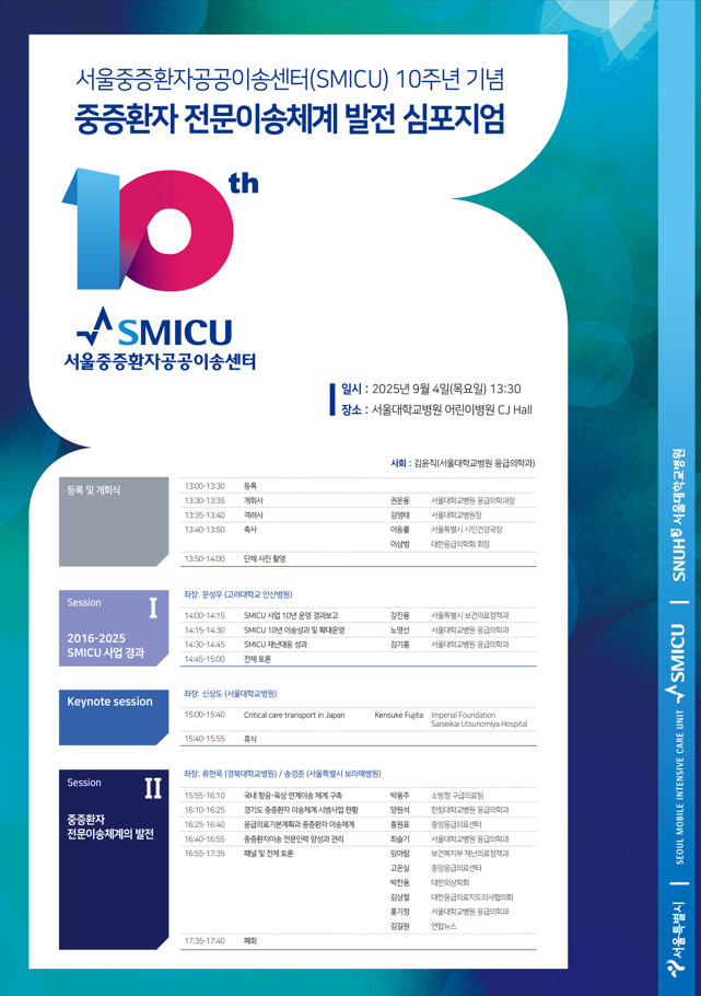 [서울대학교병원] 서울중증환자 공공이송센터(SMICU) 10주년기념 심포지엄