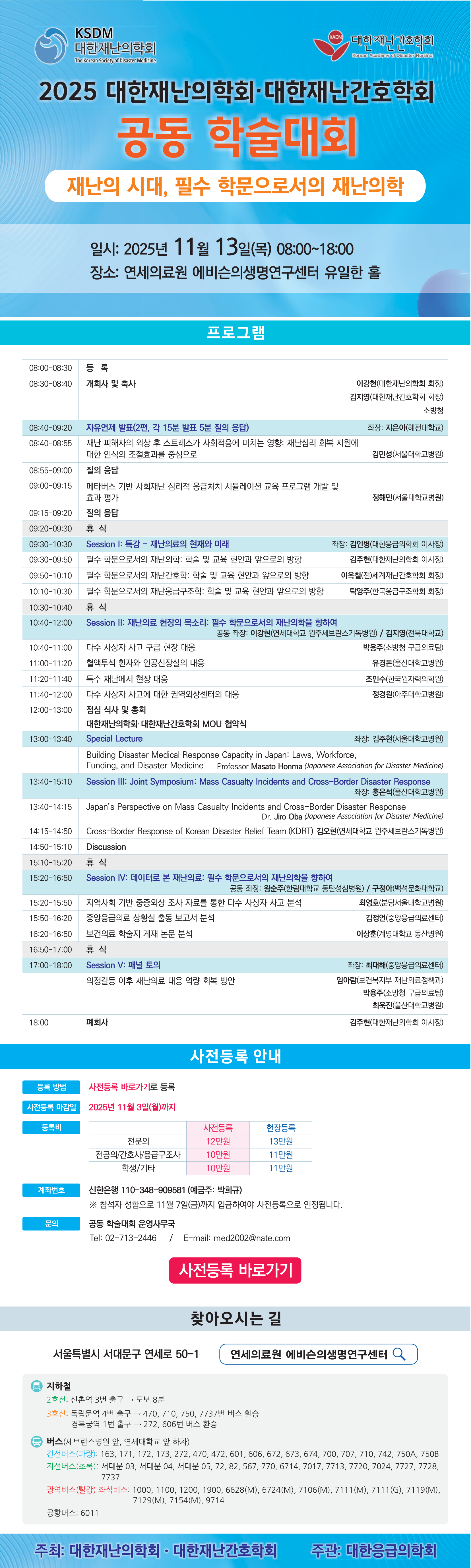 2025 대한재난의학회·대한재난간호학회 공동 학술대회 개최 안내