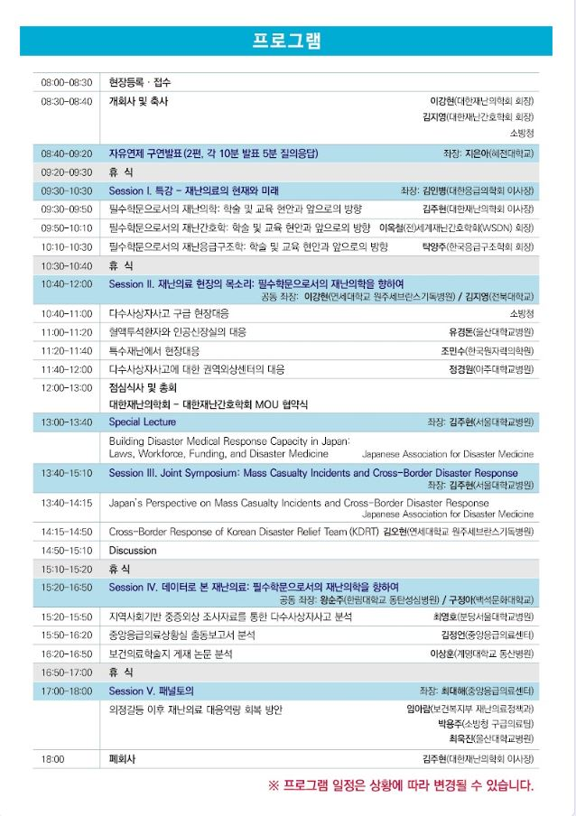 2025 대한재난의학회·대한재난간호학회 공동 학술대회