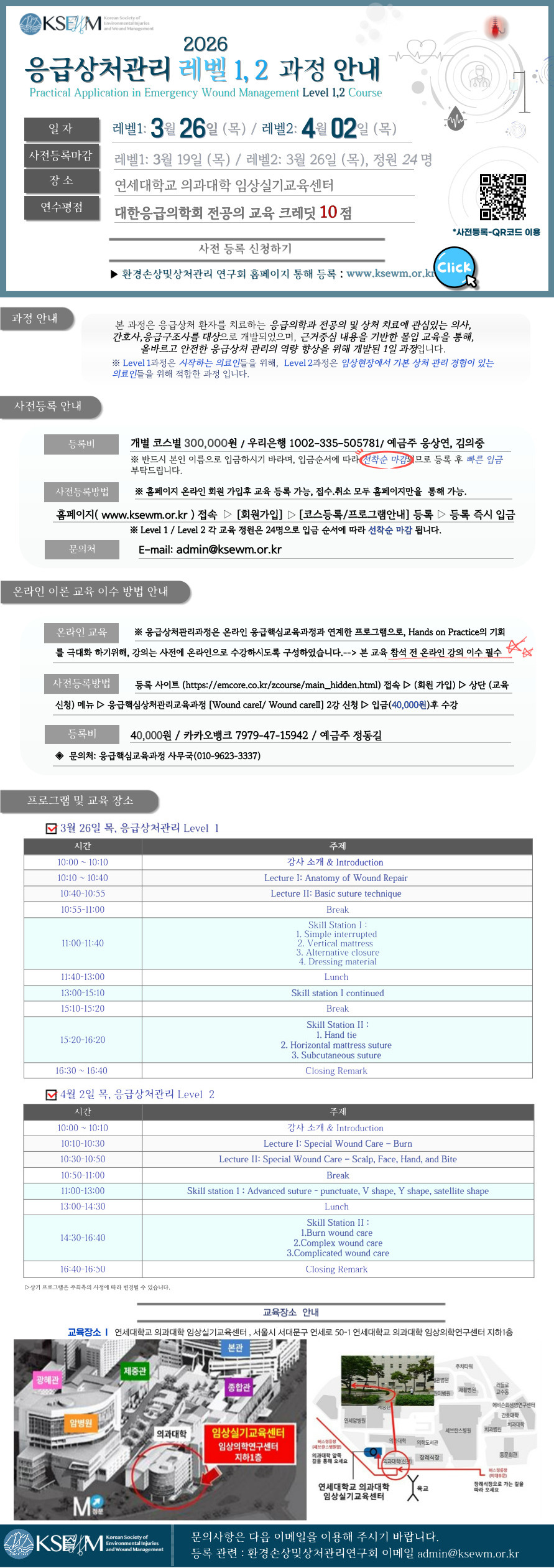 • 응급상처관리 레벨 과정 : 2026년 4 2() 10:00~16:50