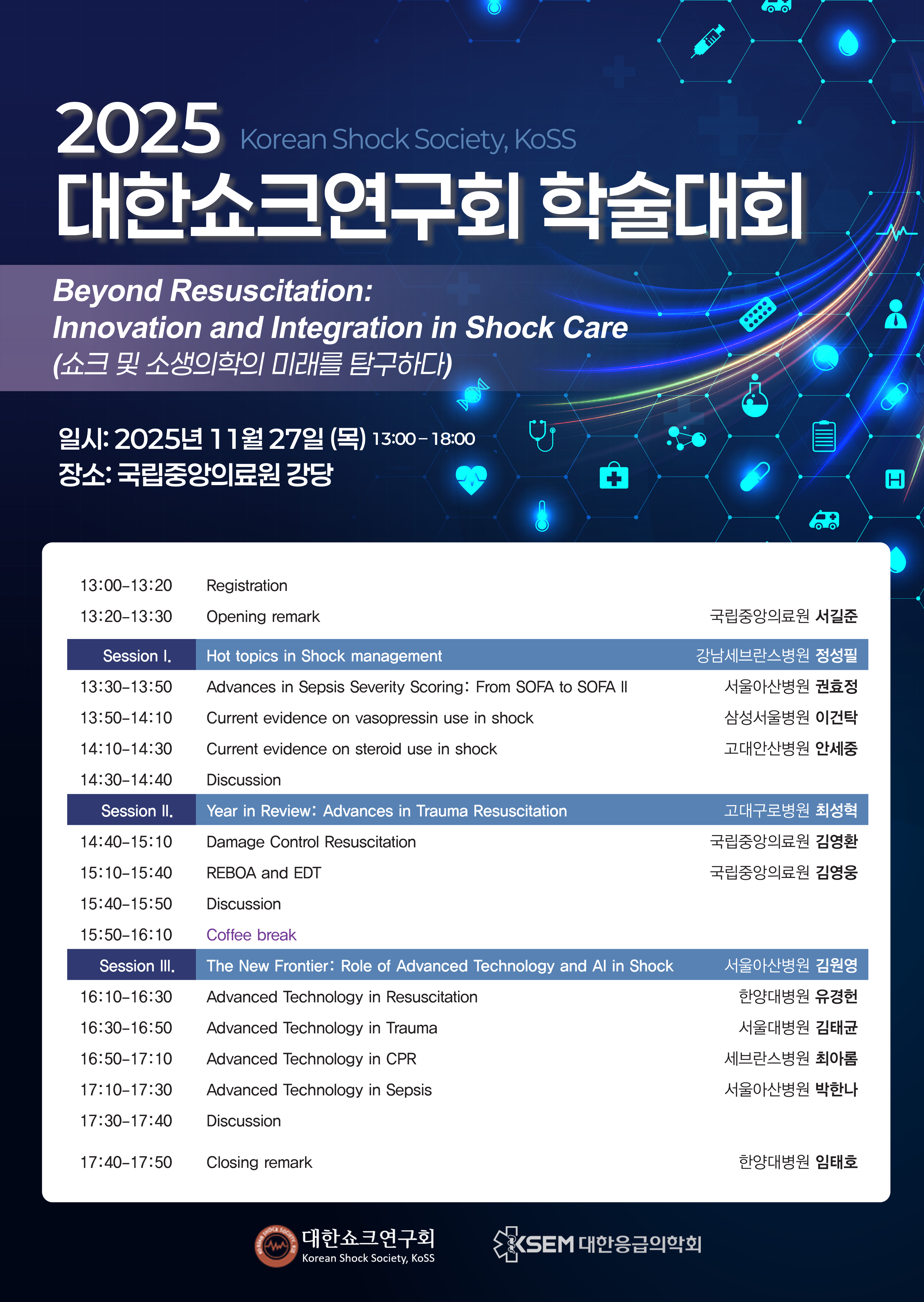 SOFA II score를 비롯하여 혈역학적 치료(vasopressor, steroid)의 근거와 인공지능·첨단기술의 임상 적용 등 쇼크 진료의 혁신과 통합을